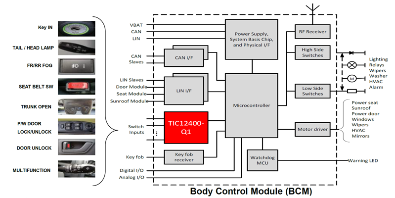 圖1:BCM通過(guò)TIC12400-Q1實(shí)現(xiàn)